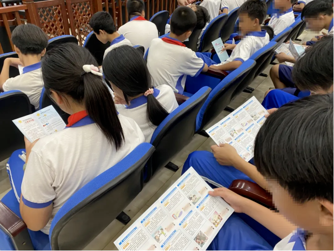 随后,法治副校长结合实际案例深入浅出地为同学们讲解校园欺凌、防性侵等法治知识和防范措施,现场发放了《中华人民共和国未成年人保护法》宣传册。同学们认真听讲,积极思考,宣讲现场气氛活跃,反响热烈。