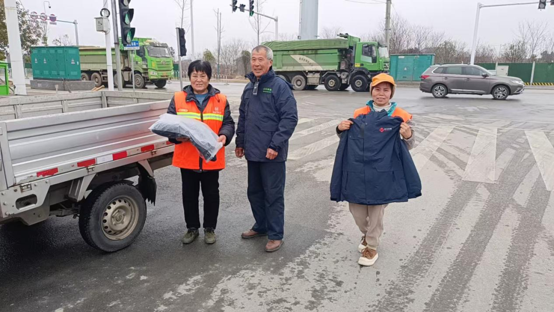 此次发放的冲锋衣是结合环卫工人户外作业实际需求专门定制的,具备防水、防风、防尘、透气和易洗等功能,能在多变天气下为他们提供更好的劳动保护。“清洁三件套”则从环卫工人日常需求出发,是一份实用且细致的关怀。活动现场,一份份慰问物资递到环卫工人手中,崭新的冲锋衣色彩鲜明、厚实防风,清洁用品贴心周到。环卫工人们脸上洋溢着笑容,纷纷试穿新衣。从事环卫工作十余年的清扫员何长庚感动地说:“这衣服又暖和又轻便,干活时穿正合适。过年还能收到这些贴心的物品,心里头热乎乎的,感觉平时的辛苦都值得了。”