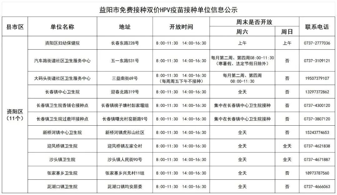 四、资阳区接种点公示如下