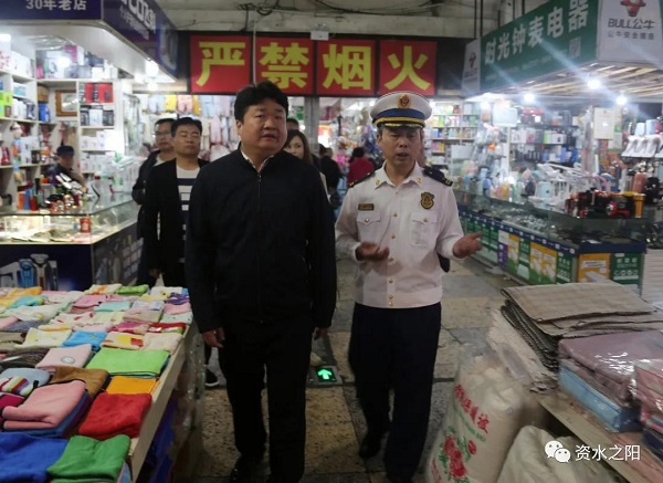 节日临近,桥北市场群一片繁忙景象。付振南一行边走边看,深入了解市场人流量、管理职责、消防部署等情况,并查看了消防泵房和消防监控室。付振南指出,中秋、国庆两节期间是生产营销的旺季,市场经营方要加大自查自纠力度,及时治理占道经营、违规用电、吸烟等行为,切实将各类安全隐患消除在萌芽状态。要加强节日安全值守,加大重点部位、重点时段的巡查力度,做到全链条、全过程严管,确保人民群众生命财产安全。