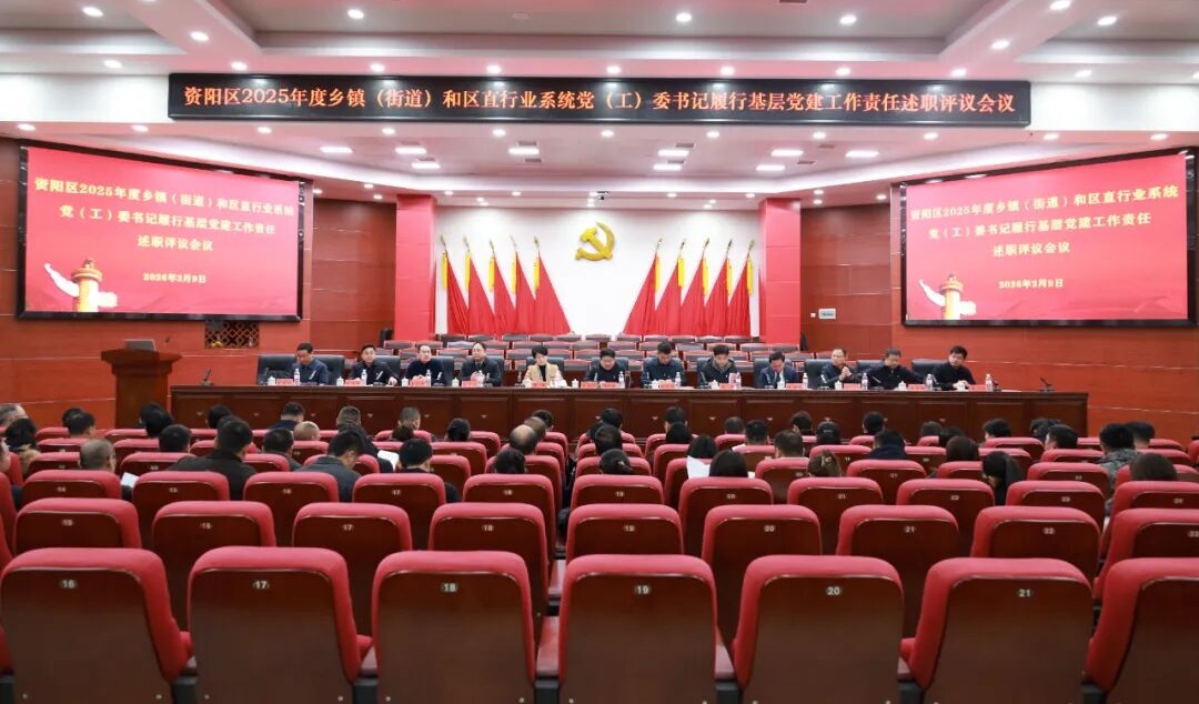 2月9日,资阳区召开2025年度乡镇(街道)和区直行业系统党(工)委书记抓基层党建工作述职评议会议,听取各乡镇(街道)和区直行业系统党(工)委书记履行基层党建工作责任情况,并对述职同志进行民主测评。区委书记付振南主持会议,对述职同志逐一进行点评并作总结讲话。区委副书记、区长黄瑛,区委副书记、统战部部长张辉,区人大常委会主任熊志元,区政协主席张金龙出席。