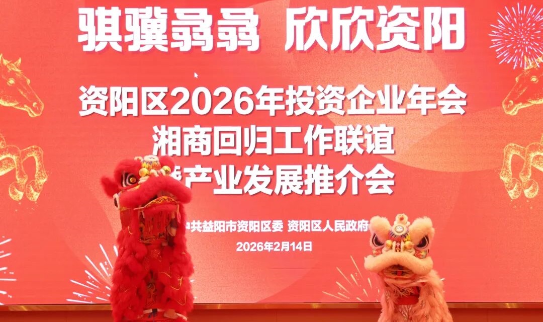 2月14日,资阳区2026年投资企业年会、湘商回归工作联谊暨产业发展推介会召开。百余名企业代表、湘商嘉宾、商协会代表及高校学生代表齐聚一堂,共谋发展。益阳市委常委、副市长朱春光出席并讲话,资阳区委副书记、区长黄瑛致辞。