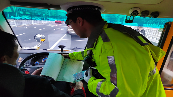 检查组现场查看了校车内安全锤、应急门窗、灭火器及急救箱等安全设施设备,查阅了校车随车交接登记本,同时检查了照管员工作情况及乘车学生安全带使用情况等。