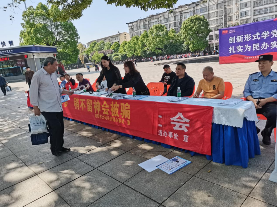活动中,司法所工作人员通过运用案例提醒群众注意识别和防范非法集资陷阱,结合我们身边的实际案件,重点向围观群众宣传非法集资行为的主要特征、常见手段及如何防范非法集资,并介绍了近几年发生在群众身边的典型案例,让大家了解非法集资的危害性,增强风险防范意识。同时向居民群众发放防范非法集资宣传彩页,尤其是提醒中老年群体要强化非法集资防范意识,珍惜自己的“血汗钱”和“养老钱”,免受非法集资危害。