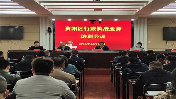 11月17日上午,为提升全区行政执法水平,资阳区开展2021年度全区行政执法业务培训,特邀省司法厅行政执法协调监督处主任冉义,市司法局三级调研员王素兰授课、指导,区直、乡镇各执法部门约100名执法人员参加。