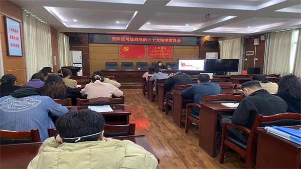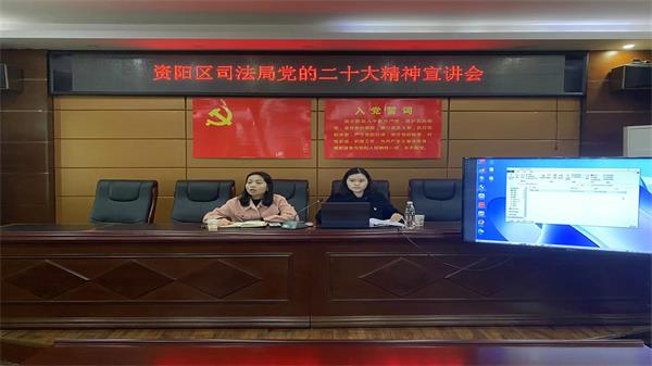 王李赛指出,学习好、宣传好、贯彻好党的二十大精神是当前和今后一个时期首要的政治任务,要深刻学习领会,确保党的二十大精神入脑入心;要深化宣传宣讲,确保党的二十大精神走深走实;要深入贯彻落实,确保党的二十大精神见功见效。要始终坚持以党的二十大精神为指引,奋力谱写资阳司法行政工作新篇章!