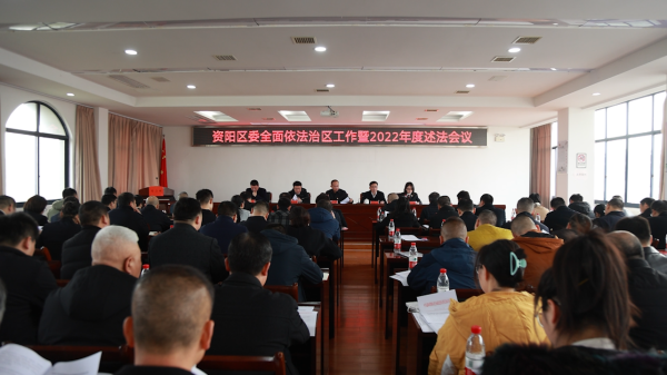 会议对2022年全区法治建设先进单位、先进个人以及优秀执法案卷进行了表彰,听取了沙头镇、区农业农村局、区市场监管局主要负责人就履行推进法治建设第一责任人职责情况进行现场述职,并充分肯定了2022年资阳区依法治区工作和法治建设工作取得的成绩,深入剖析了全区在法治理念、依法行政等方面的问题和短板,统筹部署了下阶段重点任务。