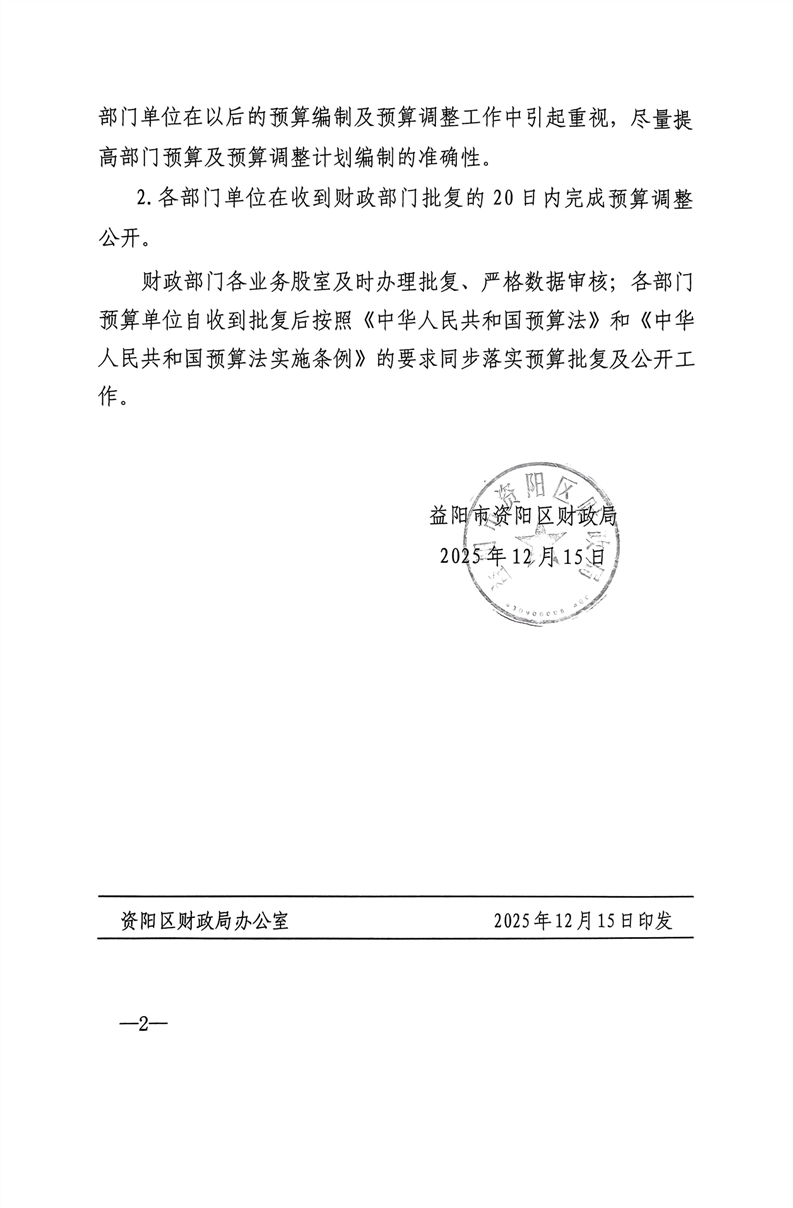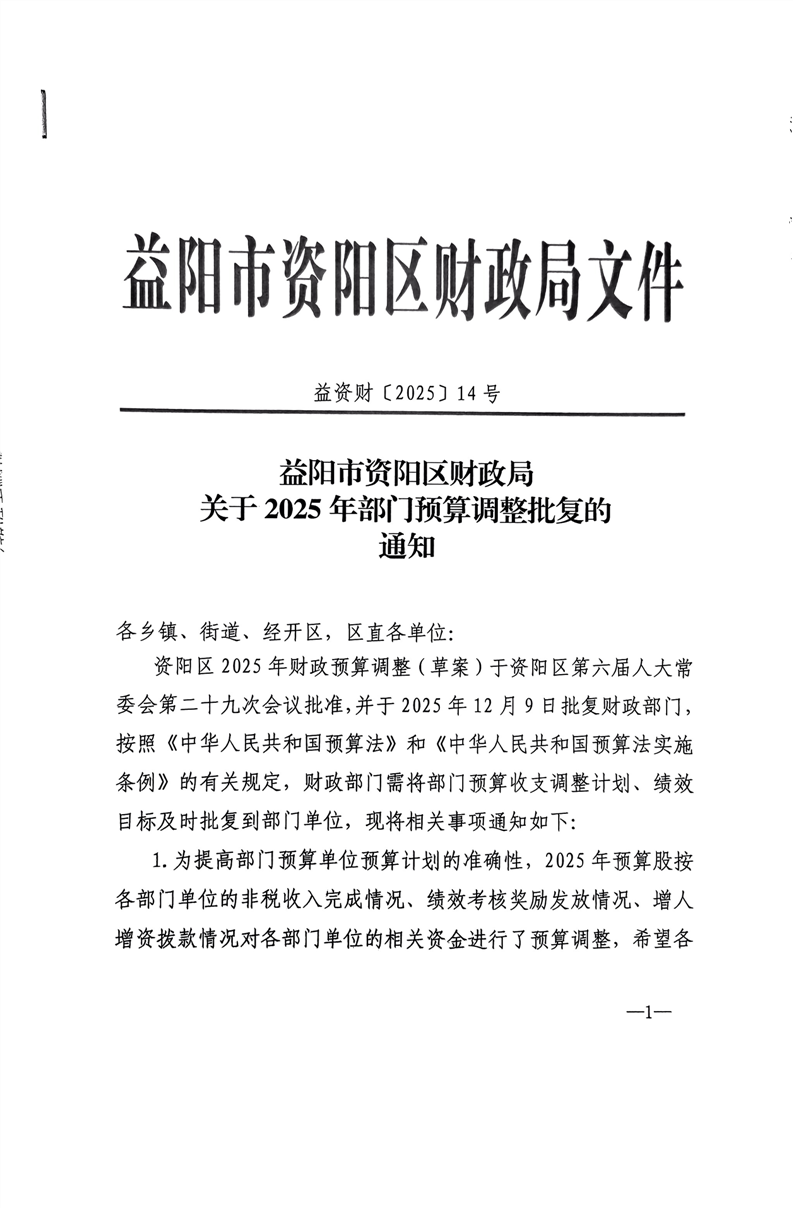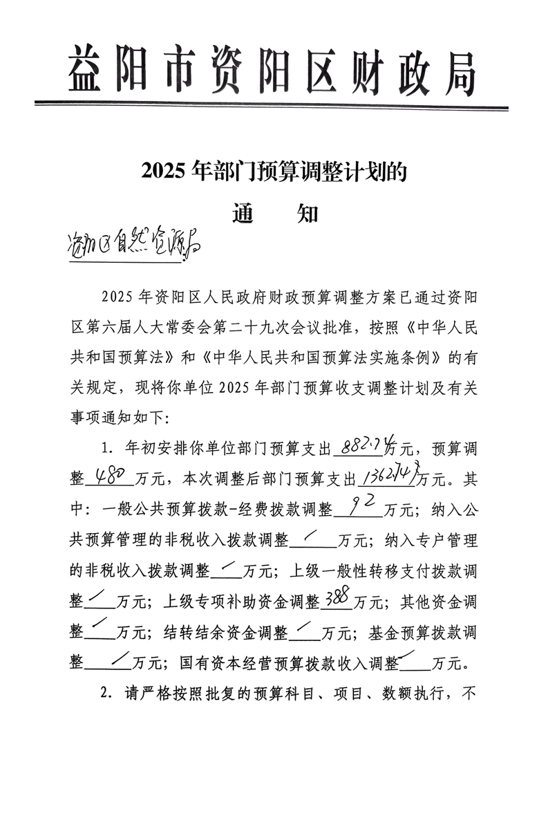 益阳市资阳区自然资源局2025年部门预算调整计划
