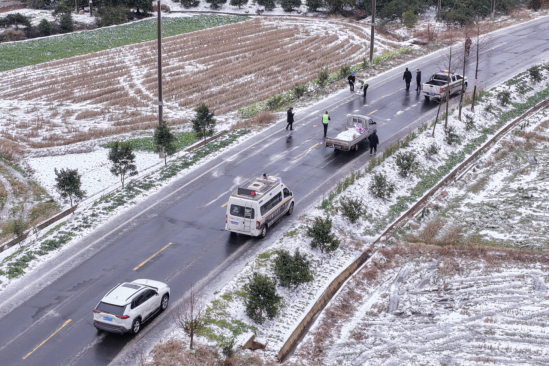 工作人员紧盯G319、G5513连接线、刘王公路等主干线及桥梁匝道、急弯陡坡、临水临崖、背阴路段等易结冰重点区域,采取机械作业与人工配合模式,科学抛撒融雪剂(工业盐),做到应撒尽撒、不留死角。同时落实24小时值班巡查制度,动态监测路况,及时处置路面隐患。