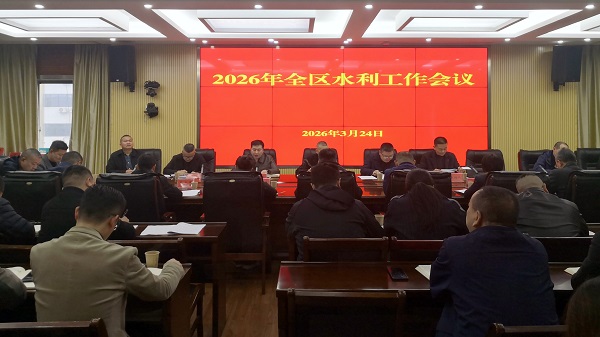 3月24日上午,2026年全区水利工作会议在区水利局召开。区委常委、副区长万巍出席会议并讲话,区水利局党组书记、局长段敏尧作水利工作报告,区政府办副主任曹达兵主持会议。