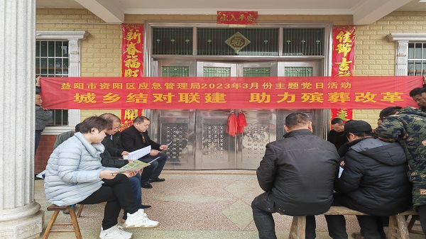 为引导我区群众更新思想观念、革除陈规陋习,建立勤俭节约、文明高尚的生活方式。近日,益阳市资阳区应急管理局机关党支部开展“城乡结对联建 助力殡葬改革”主题党日活动,积极宣传殡葬改革政策,保护生态环境,树立文明新风。