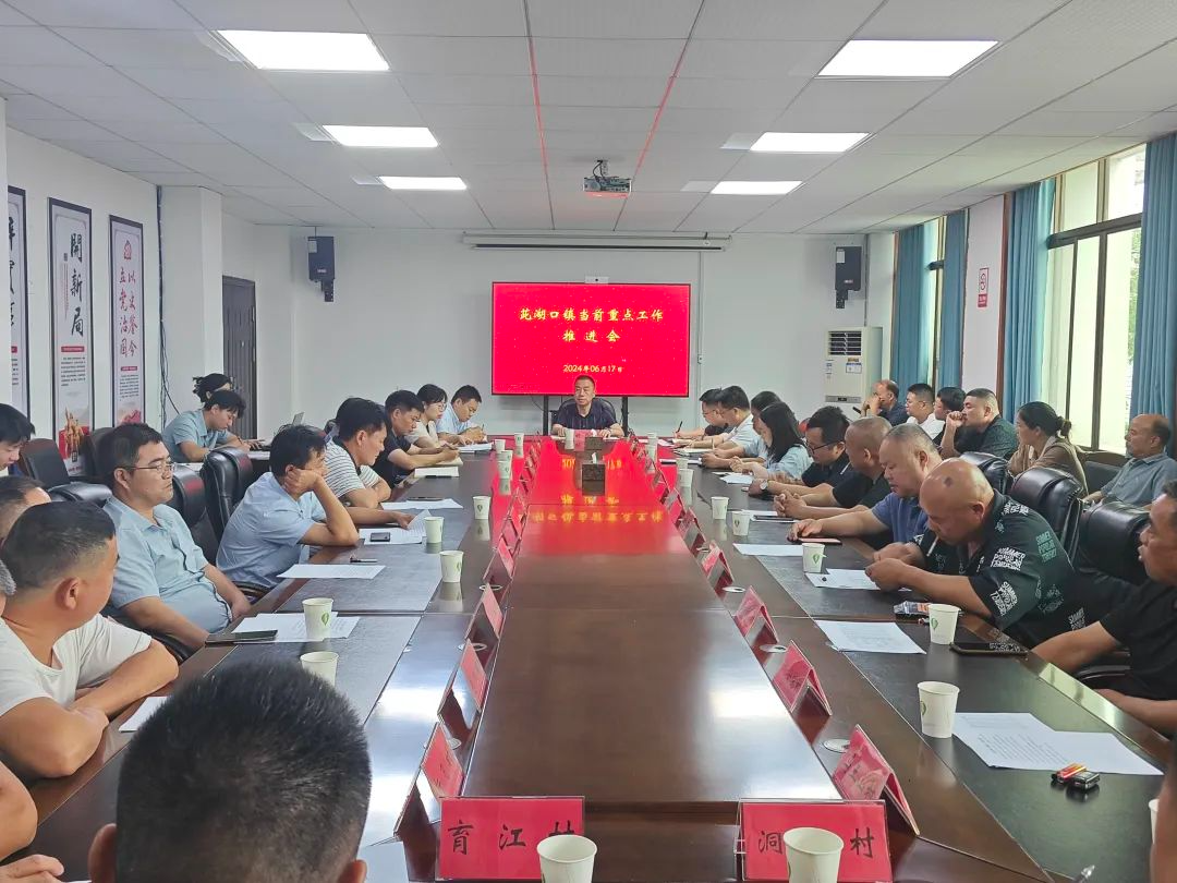 6月17日上午,茈湖口镇召开当前重点工作推进会,全体党政班子成员、机关干部、各村(社区)支部书记参加,会议由镇党委副书记、镇长戴文辉主持。