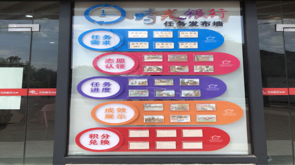在大码头街道建新里社区党群服务中心门口,“时光银行”志愿服务平台任务发布墙格外引人注目,社区将理论宣讲、环境整治、爱心陪护、关爱“一老一小”等25项志愿服务需求清单发布至任务发布墙上,认领并完成了任务的志愿者们就能获取“微笑币”,用来兑换物品和部分服务。