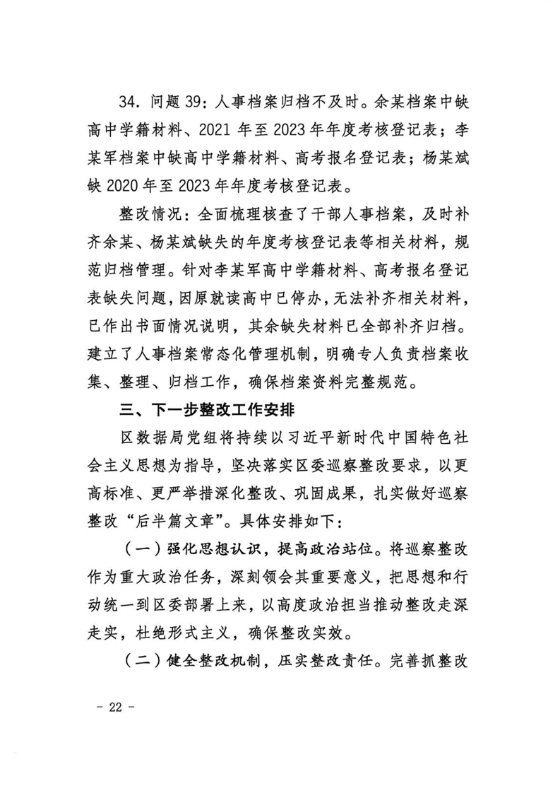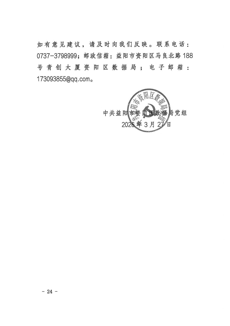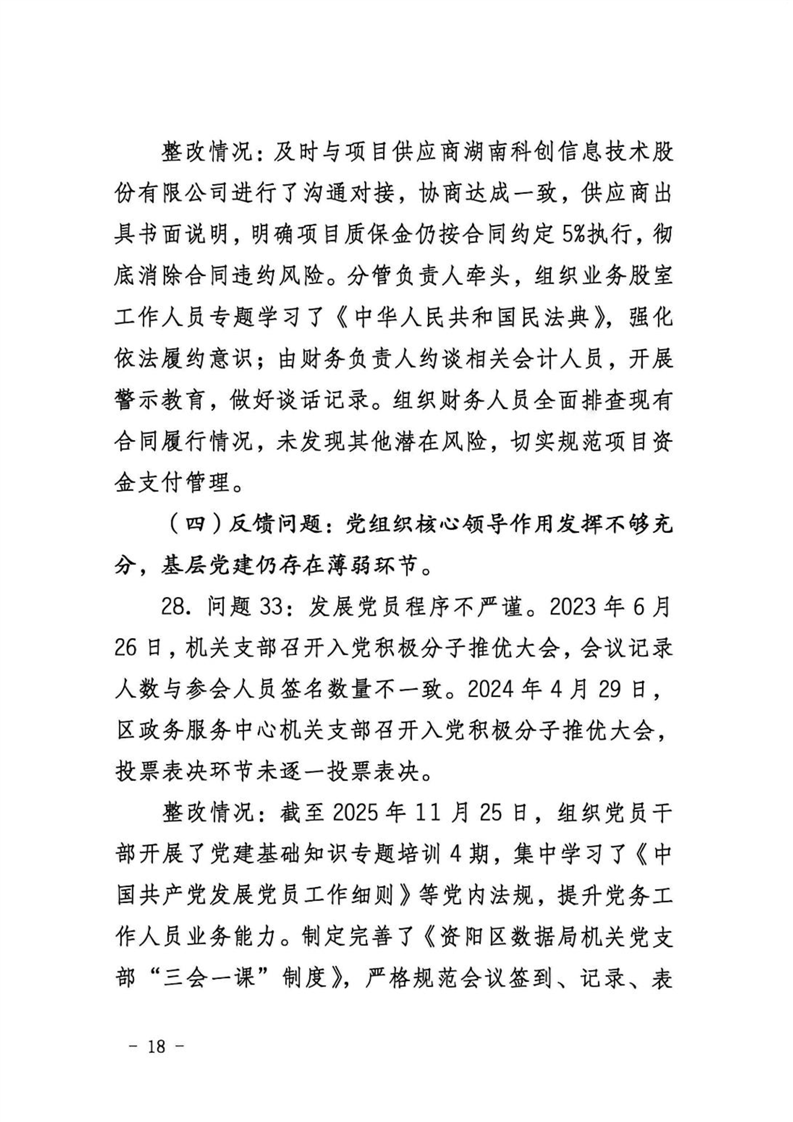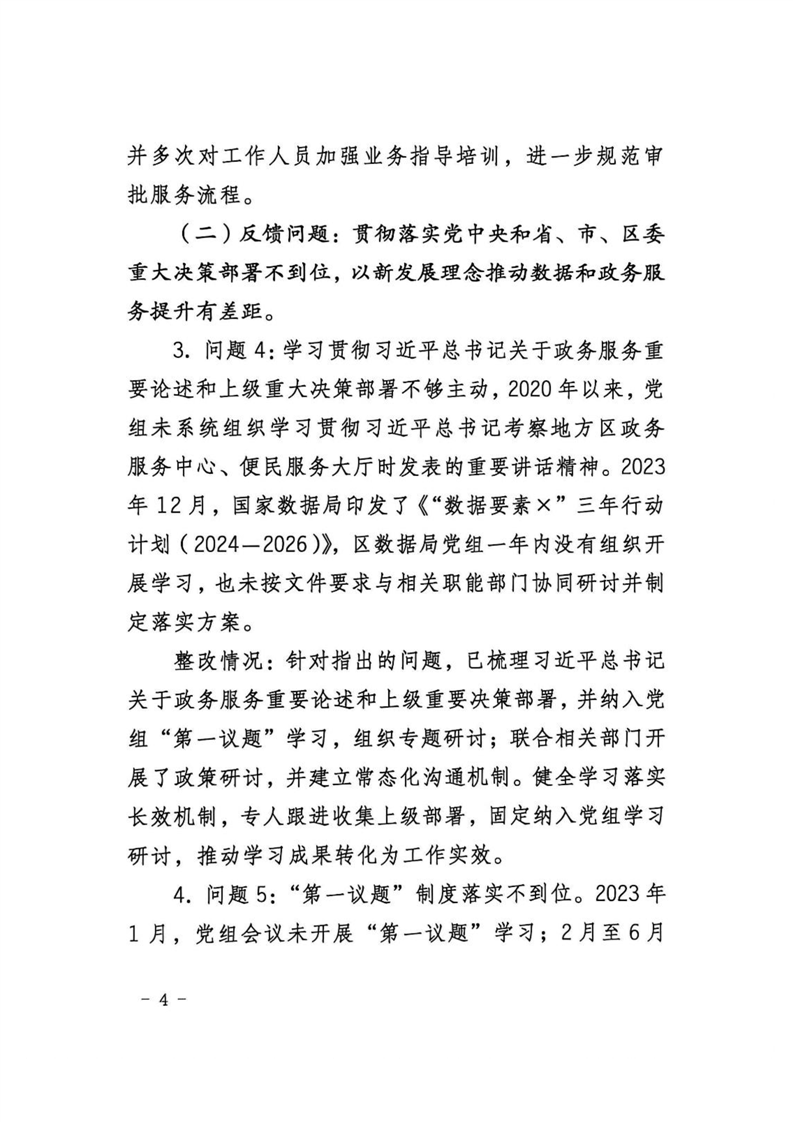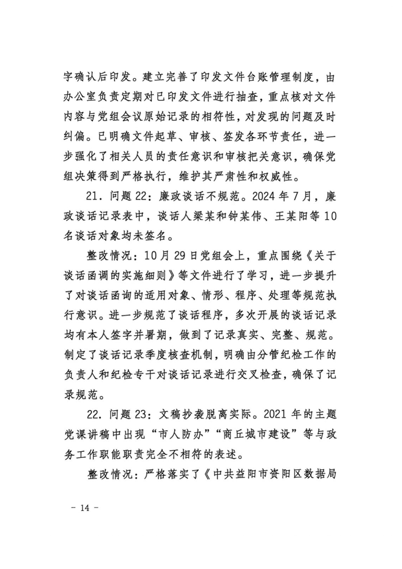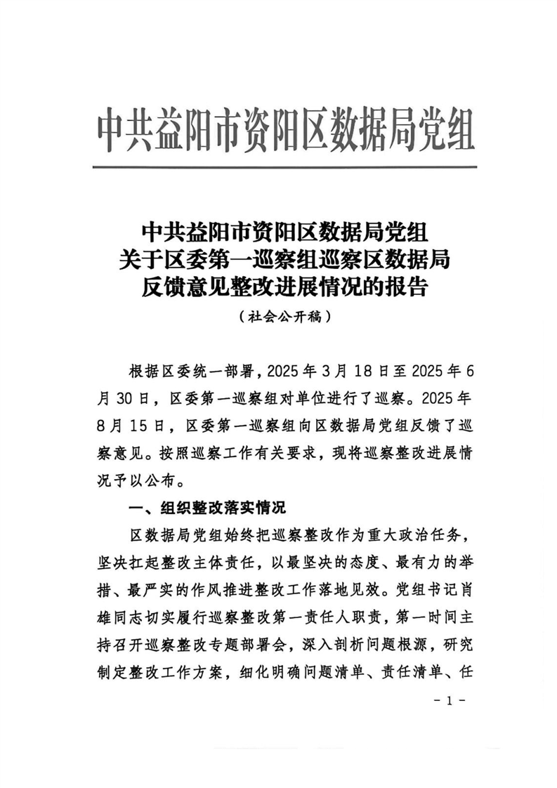 中共益阳市资阳区数据局党组关于区委第一巡察组巡察区数据局反馈意见整改进展情况的报告